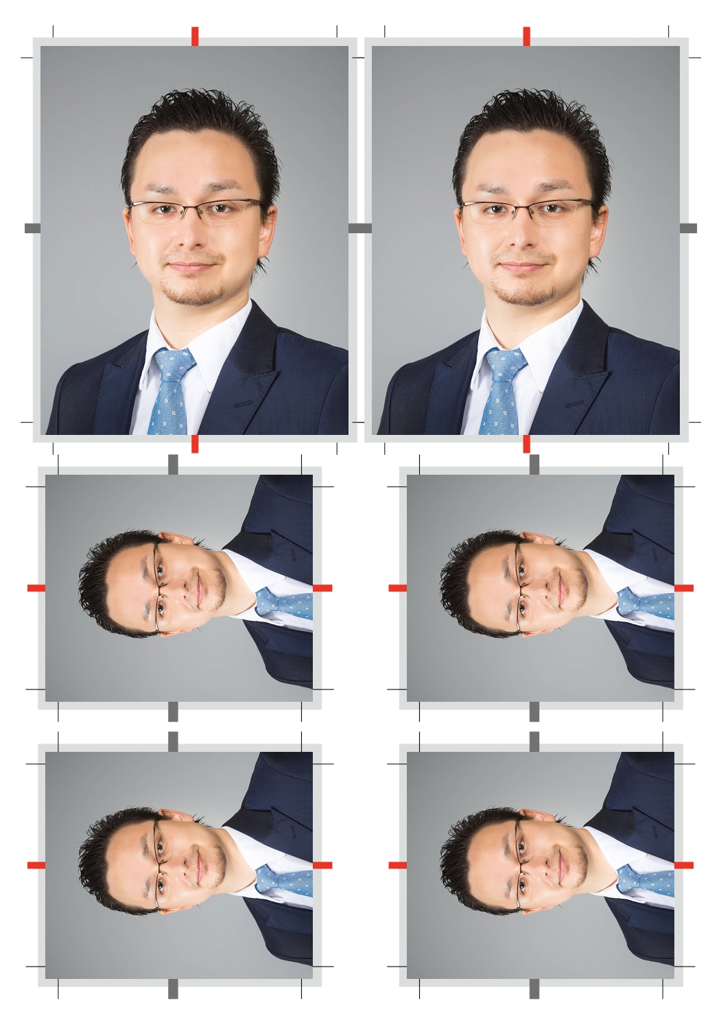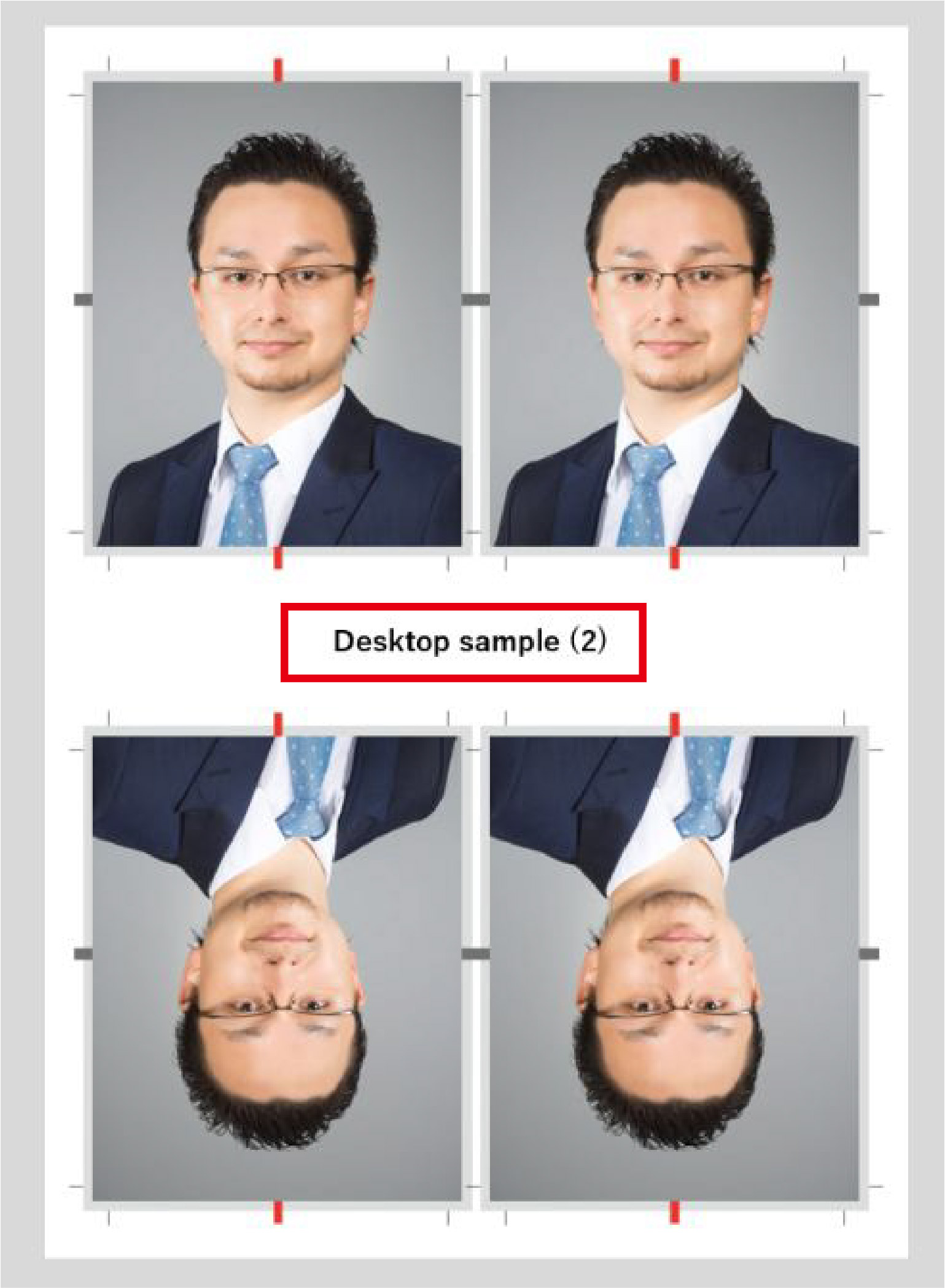 - Lサイズに3.5cm×4.5cmを2枚+2.5cm×3cm4枚掲載