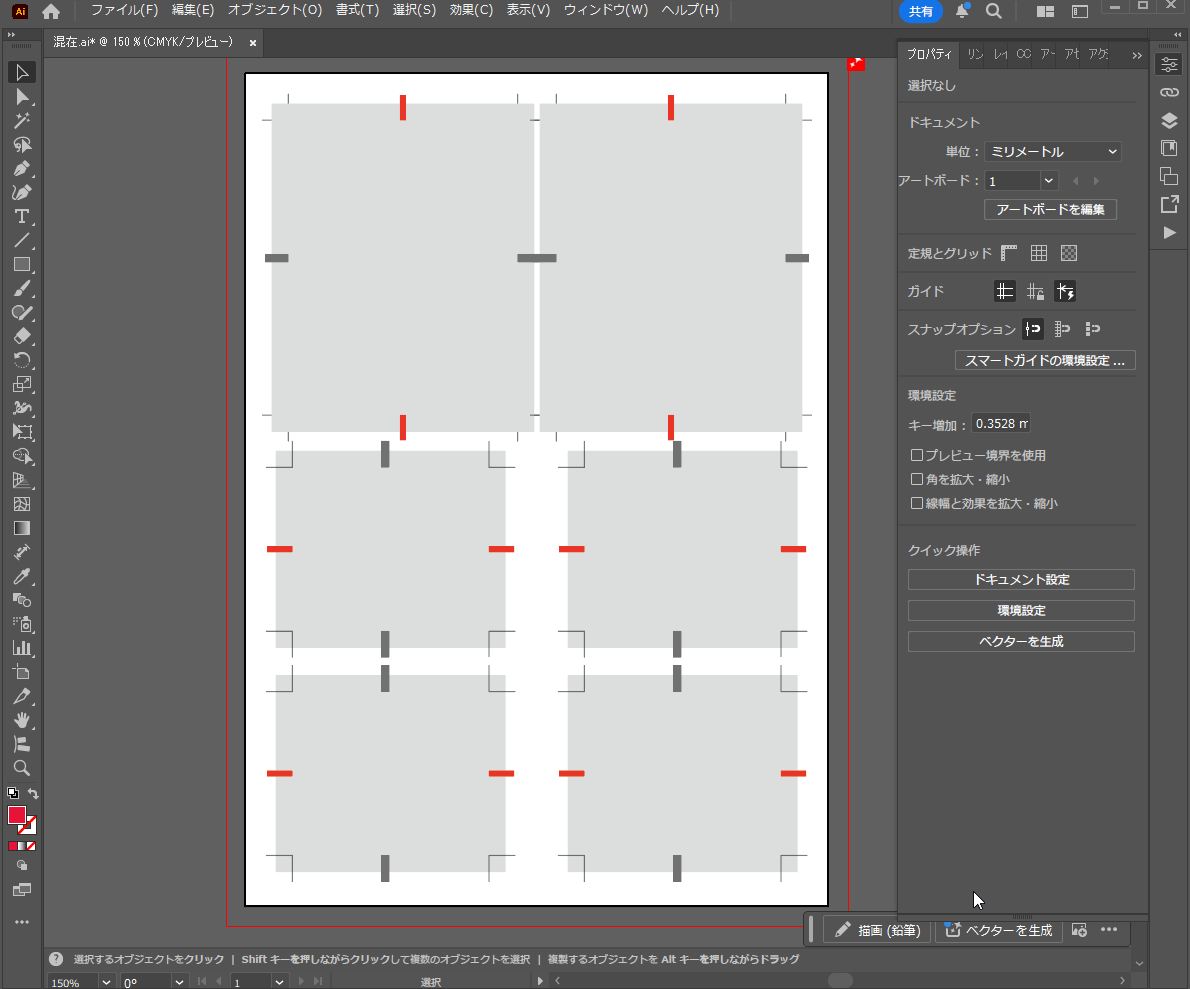 複数配置の中に配置するサイズ(3×4cmマージン1.5mmなど)を、基本サイズ設定で作成しておきます。